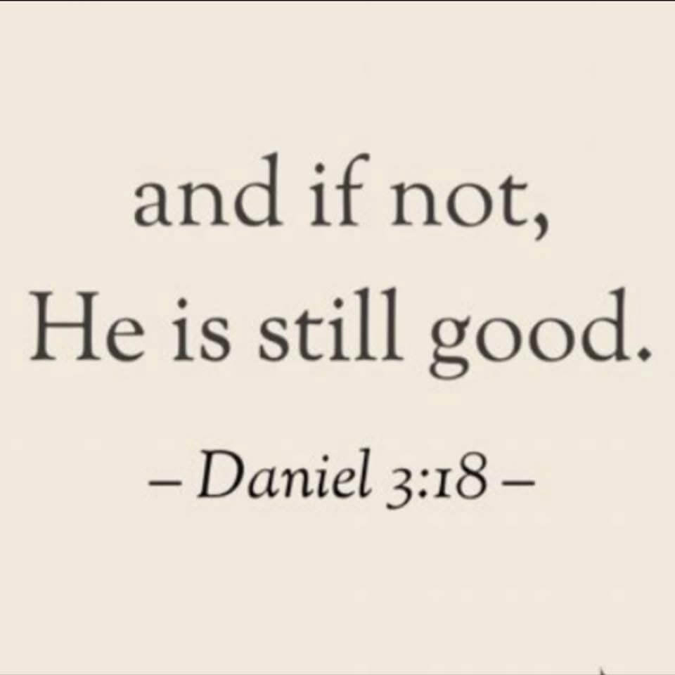 And If Not… He Is Still GoodA friend shared this recently: “And if not, He is still good” (Daniel 3:18).
